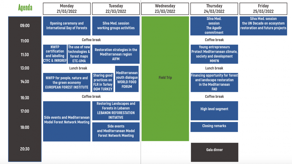 The opening ceremony will welcome participants and prsent the framework of the Seventh Mediterranean Forest Week (MFW).